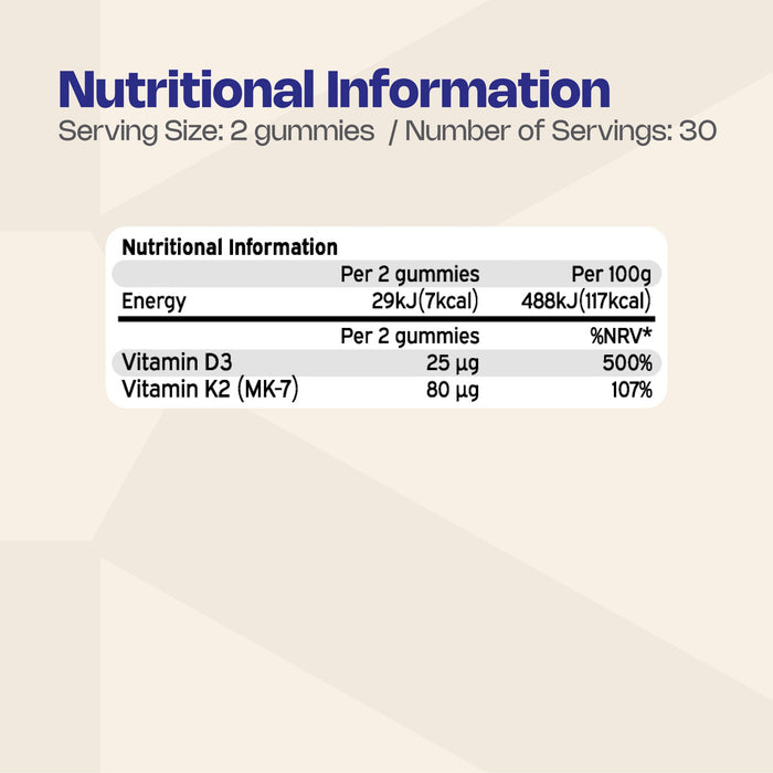 This gummy is packed with a dual-action formula that includes 1000 IU of vegan Vitamin D3 and 80 µg of Vitamin K2 (MK-7) per serving. Ideal for anyone looking for a dietary or lifestyle-friendly gummy supplement that has a quality dosage of Vitamin D without any animal by-products.